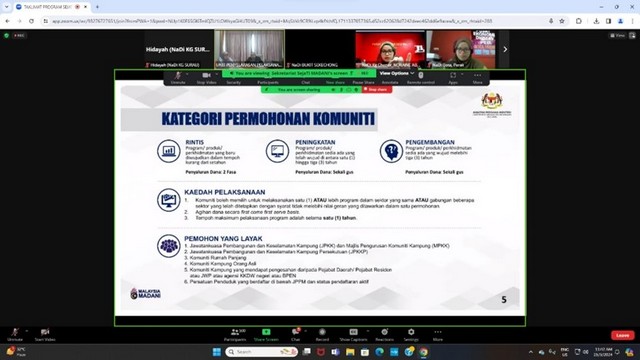 26 Mac 2024 | Aktiviti TerkiniPada 25 March 2024, petugas Pusat Sebaran Maklumat Nasional (NADI) telah menghadiri Taklimat Program Sejahtera Komuniti Madani (Sejati Madani) oleh Pihak ICU JPM yang diadakan secara maya atau lebih dikenali latihan atas talian. Taklimat bermula pada jam 11.30 pagi sehingga 12.30 tengah hari. Tujuan taklimat ini bagi menerangkan insentif yang diberikan oleh kerajaan kepada komuniti.
